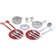 Con la sartén y la olla, los pequeños cocineros pueden preparar la deliciosa comida para después servirla en los bonitos platos.