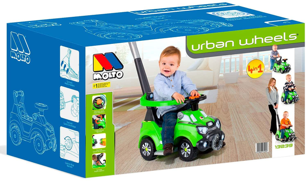 MOLTO Correpasillos 4x4 4 en 1?Este fabuloso corre pasillos puede ayudar a tus peques a aprender a andar, coche de paseo o centro de actividades. Se puede montar de 4 maneras distintas para adaptarse a cualquier situación. Incluye: Maletero, manivela para soltar y recoger el gancho, claxon electrónico y pilas inlcuidas.