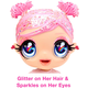 SIGUE EL BRILLO - Sigue el brillo hacia el atardecer y gira a la izquierda hacia la luna para descubrir el mundo mágico de las Glitter Babyz. Son muñecas brillantes, con ojos grandes, brillos en las pestañas y purpurina en el pelo.