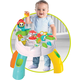 Con muchas actividades: el área de las formas es interactiva con luces y sonidos, los engranajes giran, pulsando los botones los personajes se mueven y también hay una divertida ruta de bolas con tobogán que termina en las patas de la mesa.