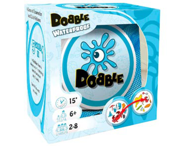 Dobble Beach juego de cartas versión impermeable, con un divertido diseño que te permitirá llevarlo a todas partes y poder jugar tanto en la playa como en la piscina. ¡Sus cartas son resistentes al agua! En el juego, los jugadores deberán encontrar el símbolo idéntico en dos cartas, decirlo en voz alta y coger o dejar una carta, según las reglas del mini-juego al que estén jugando en ese momento. ¡Deberás ser rápido y utilizar tu observación y reflejos! En el interior encontrarás 30 cartas para comenzar a jugar y las instrucciones de juego. Una vez terminado el juego, podrás guardar todos los accesorios en la bolsa de transporte y llevarlo cómodamente contigo. Juego de 2-6 jugadores. El juego tiene una duración de entre 15-30 minutos.