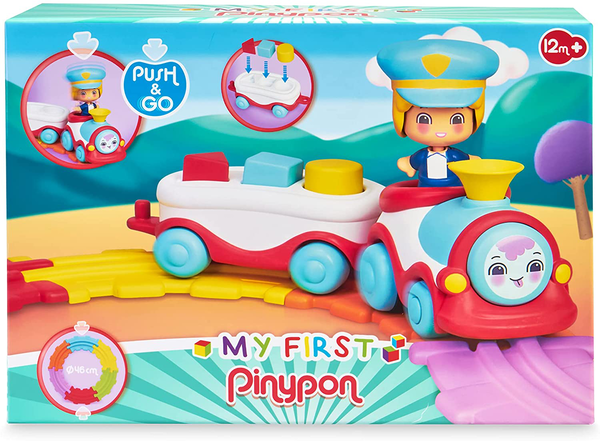 Incluye el tren divertido, unas vías movibles, una figura Pinypon de maquinista y 3 bloques de diferentes formas y colores para encajar