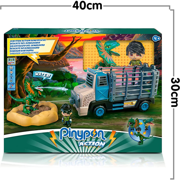 El camión está reforzado para transportar dinosaurios y proteger al conductor; es compatible con todos los dinosaurios de la colección de Pinypon Action Dinos