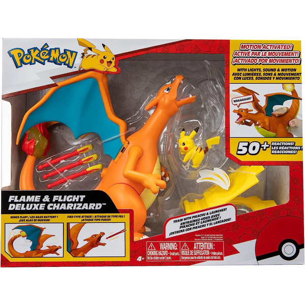 ¡Preparate para volar, rugir y mucho más con este fantástico set! Incluye 1 figura de Charizard, 1 figura Pikachu 5 cm. y un lanzador catapulta de Pikachu para poder lanzarlo y combatir contra Charizard.